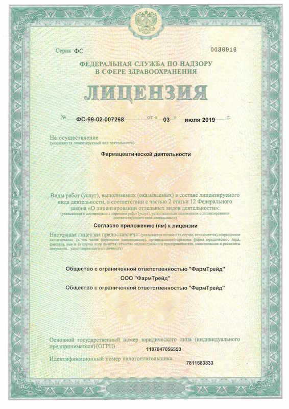 ООО «Фармтрейд» — российская фармацевтическая компания, осуществляющая деятельность в сфере оптовой торговли лекарственными средствами и фармацевтическими субстанциями производстваа ООО «РБ» (РОСБИО). Компания зарегистрирована в городе Санкт-Петербург и работает на рынке с 2018 года.